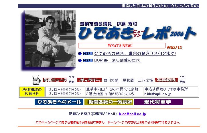 そして、Windows95の時代になり、いち早くホームページ「ひであきレポート」を開設したのが10年前の1996年11月、足掛け10年が経過しました。