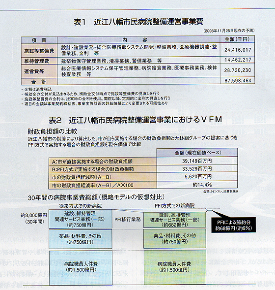 PFI法(民間資金等の活用による公共施設などの整備等の促進に関する法律)が施行されたのは1999年9月。近江八幡市が市民病院の移転新築を決めたのは、その前年。すでにその頃から川端市長を中心に病院PFIの検討が始まっていたというから画期的である。