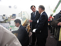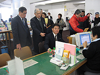 @訪れた市民にフロアマネージャー(市役所退職者の再任制度利用)が総合案内で用件や状況を聞き、A申請書自動作成システムカウンターに来ていただく。B作成システム担当者が受付け、身分証明書を提示してもらって、その場で証明書を発行し、手数料を受領する仕組み。