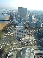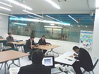 2月4日、九州視察二日目。冬の陽に映えるシーサイドももち海浜公園を望み、ヤフードームと福岡タワーの中間にある西日本テレビ放送会館「バヴェリア」の2階にあるのが「ロボスクウェア」。