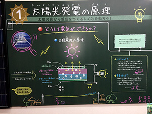 「メガソーラーたけとよ」は発電出力7500Kw(一般家庭約2千世帯分)の中部地区最大級の大規模太陽光発電所。愛知県知多郡武豊町に建設され、東北大震災が起こった2011年10月に営業運転を開始し、ナゴヤドーム3個分の広大な敷地(約14万u)に整然と並ぶ、約39168枚の太陽光パネルが20度の勾配で並ぶさまは壮観です。