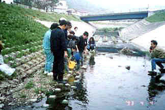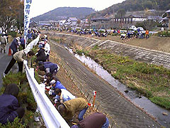 第7回清掃活動実施。柳原団地の前で鯉を放流。