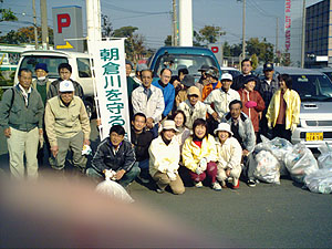 第9回「朝倉川530大会」。「朝倉川を守る会」も14人が参加し、「御園橋」と「御弓橋」までを商工会婦人部や地元町内会の三団体で受け持った。