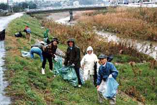 午前9時から第17回「朝倉川を守る会」の清掃活動。約1時間。参加者約50人。「守る会」を結成した頃のごみの量からは比べ物にならないがそれでも相変わらずのごみがでてくる。