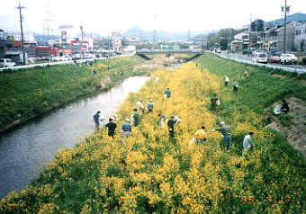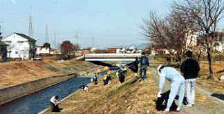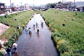 朝倉川周辺の住民有志16人が御園橋付近のビンカン拾いを行った。これを機に「朝倉川を守る会」を結成。 会長=石原武志