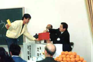 雨のため清掃活動を延期し、第2回「朝倉川シンポジュウム」を青陵地区市民館で実施。来賓に村田助役、講師に太田昭宏氏、演題は「我がふるさと−朝倉川と夏みかん並木」