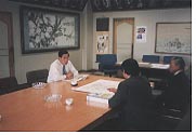 01年11月22日(木)議会選出監査委員として代表監査委員を先頭に、一般会計・特別会計の決算審査意見書を市長に提出。これからの行政経営について意見交換。