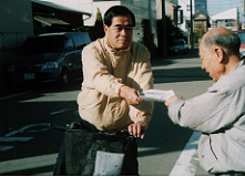 01年12月31日(月)「ひあできレポート」NO50を一軒一軒手配り配布。作り続けて、配り続けて15年。年末恒例の年越し配布を今年も。凍てつく街を黙々と。
