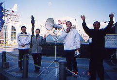 02年1月6日(日)新年の決意に燃えて、議員団で豊橋駅前街頭演説。激動の時代に「安心と平和の年」にすべく、責任与党の立場で、生活者の視点で戦う事を訴えた。