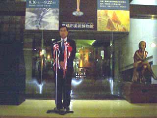 02年8月9日(金)市美術博物館での「北澤美術館 アール・ヌーヴォーガラス名品展」のオープニングであいさつ。