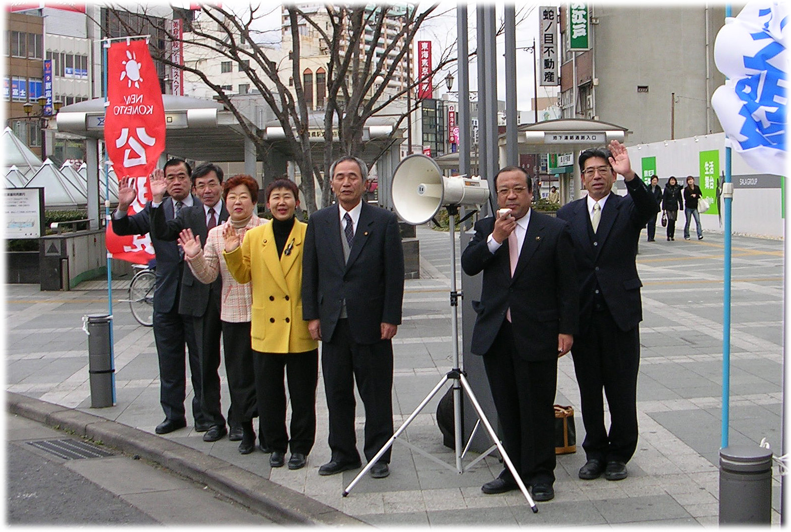 06年01月04日(水)06年の冒頭を飾って豊橋駅前で議員団一同で街頭演説。「セーフティネットを強固に!」戦いは始まった。