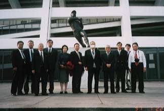 午後、オリンピック跡地を見学。あのメインスタジアムは取り壊されていて半 分がアトランタブレイブスの本拠地野球場になる工事が急ピッチで行われてい た。755号のホームランを打ったハンクアーロンの銅像の前で「オー(王)ノ ー」といってみんなで記念撮影。