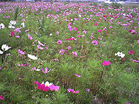 夏の陽にコスモスの花が。豊岡村にて03/06