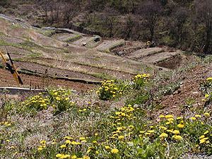 信州・稲倉の棚田にタンポポが 06/05