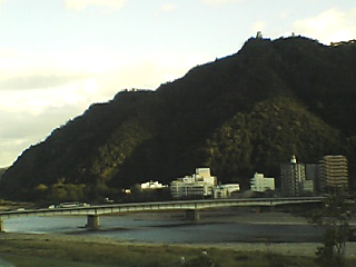 終了後、正面のカーテンが開き、夕闇迫る金華山と岐阜城が現れたのは、大変に結構な演出であった。