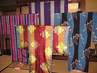 明治から昭和にかけて生糸の町として栄えた須坂。蔵の町並みが残る旧市街の街道沿いに建つ須坂クラシック美術館。手描き風に仕上げられた型染めの着物が古い民家に見事にマッチしていた。