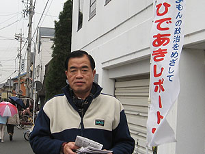 夕方の街頭演説をじーっと聞いていてくださる女性がいた。「どうかされましたか」と話しかけたら、「私は精神障害で授産施設に通っています。今年から施設利用料が毎月7500円引かれるようになったのですよ。少ないお給料から、この7500円が引かれなければ、病気のお母さんの治療をもう少しできるのに、何でこんなことになるのですか。今年の春までは、一般の会社で働いていたのに、リストラされて、授産施設に行くようになって、何にもいいことありません」