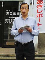 それでもお年寄りたちが、手を差し伸べて「私にも下さい」と楽しみに受け取っていってくれた。「テレビのゆうことも分かりにくい。年寄りに解るように説明してくれないと」と、顔なじみのおばあさん。途中、朝市にやってきた市職員とばったり。チラシを見て、「私たちが市民に向かってやることかもしれませんね」。