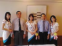 ●7月10日(木)先日、第29代ミスみなとに選ばれた「港の女王」山本彩さん「船の女王」伊藤瑶子さん「海の女王」伊藤笑子さんの3人が市議会を表敬訪問していただいたので議長と共に応対した。
