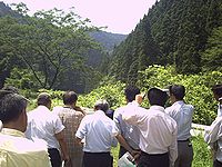 その後、えん堤建設予定地や、土捨て場、水没者移転候補地などの現場を視察し、昼食会場まで議長や副町長につきあっていただき、貴重な一日となった。