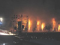 「三州豊橋の煙火」次々と夜空を焦がし、降り注ぐ火の粉を浴びて立つ勇姿に、会津や東京、大阪からの45台の観光バスの遠来の観光客も迎え盛り上がった。また太鼓集団「志多ら」の洗練された太鼓も鳴り響き、10年ぶりの「炎の祭典」を堪能した。