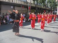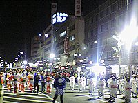夜は、3年越しの雨の心配ない「市民総踊り」、約1万人が「まつけんのええじゃないかU」などのダイナミックなリズムに乗って、各団体の趣向を凝らしたゆかたや法被、ユニフォームで熱気に包まれた。野崎副市長や各校区自治会長と共に激励台で、拍手を送った。