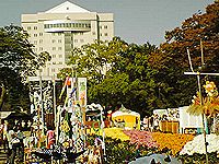 午後10時からは市身障者会館で「障害者スポーツ大会」。250人の障害者や父兄が集まって、屋内体育館で開かれた。笑顔でゲームに興じる障害者たちにエールを送った。