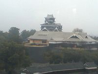 ●2月3日(火)中部国際空港から熊本へ。冷たい雨に煙る熊本城を正面に見て、熊本市役所14階のレストランで食事。