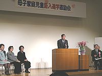午後1時半からは「ライフポートとよはし」中ホールでの「母子家庭児童新入学進学激励会」に出席。自らも中学2年のときに交通事故で父親を亡くし、その日から始まった苦しく、辛い日々の中で頑張る母親の背中を見ながら、生き抜いてきたことを話した。