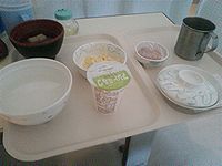 ●4月24日(土)今朝の食事。ご飯スープといったほうがいいくらいの主食と、これまたおすましスープに、やわらかい野菜炒めが少々。それでも食事がでるようになったことが嬉しい。