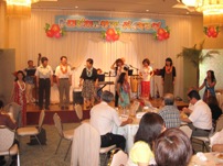 その後、会場を移してホテル内で恒例の「トロピカルサマーバイキング」に合流。ステージではハワイアンの演奏などのイベントが行われていて、夏の夜を会員と共に満喫した。