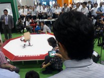 中央特設会場での4台のロボットによるリーグ戦はプロレスのリングアナウンサーが仕切っていて、おもしろかったし、その技術がよく理解できた。