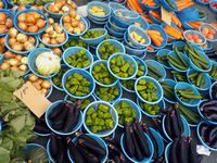 ●8月13日(金)朝7時ごろから、三八朝市で「ひでレポ」を配った。盆前の買い物客でにぎわい、八百屋さんも商品一杯。