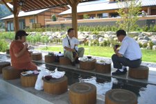 関東で一番人気のあるという川場の道の駅「川場田園プラザ」に寄った。広大な敷地にファーマーズマーケット、そば処、ビールレストラン、ビール工房にパン工房、ミルク工房などに遊園地や陶芸教室などもあって買・食・遊のメニューのてんこ盛り。さすがの施設である。昼には水沢うどんを食べようとして計画していたが、作りたてのハムソーセージの山賊焼に地元野菜のスープで堪能。しめて380円。これまたラッキー。