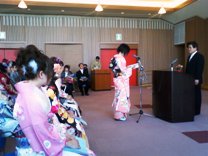 来賓あいさつの中で「坂本龍馬が大政奉還、明治維新と歴史を回転させたように、秋山兄弟や正岡子規が明治という激動の時代を走り抜けたように、坂の上の雲に向かって、すなわち自分で決めた夢に向かって、頑張ってください。この中には様々な問題で苦しんでおられる方もあるでしょう。でも決して負けないで、途中で放り投げたり、あきらめたりせずに歯を食いしばって頑張ってください」と激励した。