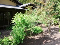 ●5月4日(金)静岡交流で、静岡から富士へ。新茶の緑が清々しい。富士で従兄弟と友好を温めたあと、立ち寄った蕎麦屋さんで、遅めの昼食。お座敷から見る竹林が、初夏の風情。