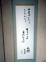 ●11月18日(日)名古屋市内で友人、知人、親戚を回る。長年、航空機産業の型枠の技術者として働かれた妻の親戚筋のご家庭では、いつも丁寧に迎えていただく。「そこに相田光男」氏の掛け軸があった。「つまずいたり、ころんだりするほうが、自然なんだ。人間だもの」。そして隣には見事なる山水画が。聞けば、共にご夫婦の作品で山水画がご主人が、そして相田光男の言葉は奥さんが書かれたもの。ご夫婦でこんな素晴らしい趣味があって、晩年を迎えておられることにただただ感銘を受けた。