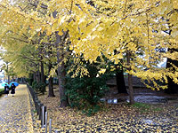 ●11月26日(月)豊橋公園のイチョウ並木が雨の中で鮮やかな黄色の世界を描き出している。