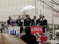 しかし、消費税は所得の低いかたの生活を直撃するから、軽減税率をきちんと、させていただこうとしています,」と話し、比例東海ブロックでの3議席奪還のために全力で戦うと支持を呼びかけた。