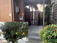 ●12月24日(月)豊橋市内にある主なき家、ナンテンの花が赤い実をつけ、家の前にはこの家の主が生徒会長の時に提案した夏みかん並木には、黄色い凸凹みかんがたわわに実っていた。