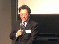 「脳波による認知研究とその応用」と題して豊橋技術科学大学エレクトロニクス先端融合研究所准教授南哲人氏(42)の講演の後、田原市商工会会長の河合利則氏(59)が講演した。