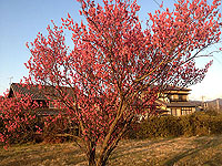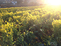 ●2月22日(金) 夕方、家庭訪問活動に回っているときにみかけた春の便り。道路わきの畑で「菜の花」が夕日に輝いていました。そして、交差点の角っこでは梅の花が赤い花びらが夕日に揺れていました。春はもうすぐです。